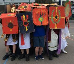 After lunch, we enjoyed some food tasting (including dates, figs, olives and dried apricots) and using our shields to create the testudo (Latin for tortoise) formation which the Romans used for defence in battles.