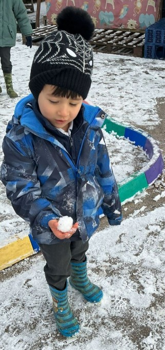 We returned to school to be greeted by some snow! What fun we had making snowballs, snowmen and snow angels. We loved seeing our playground covered which enabled us to also explore mark making in a new medium.
