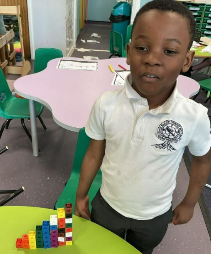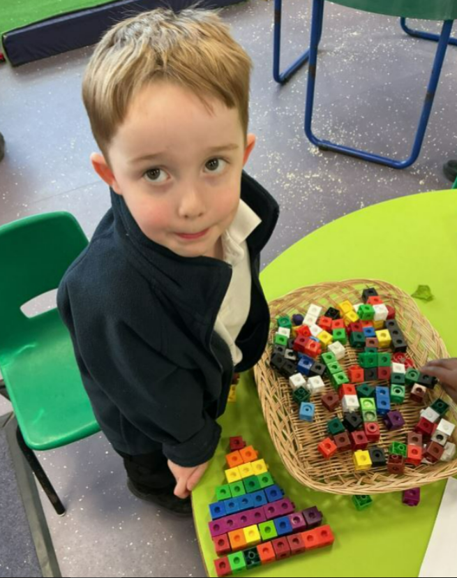 In maths, we have been looking at more and fewer and building staircases to show that each number is one more than the previous number. Here are some examples of wonderful staircases we made using the multi link cubes.